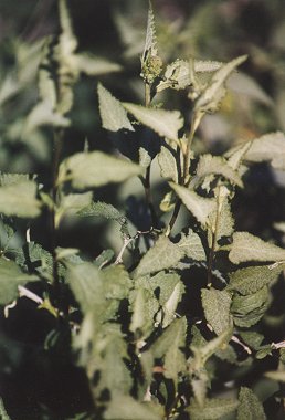 shrub which grows to about 2 feet in height. Leaves are gray-green on