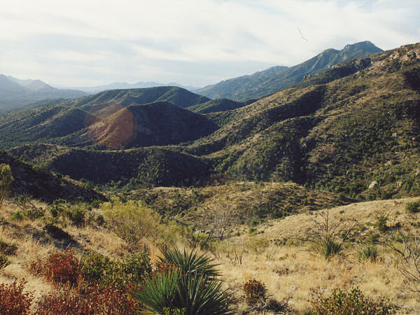 manzanita, prickly pear, bear grass, oak, yucca and juniper. Looking up at